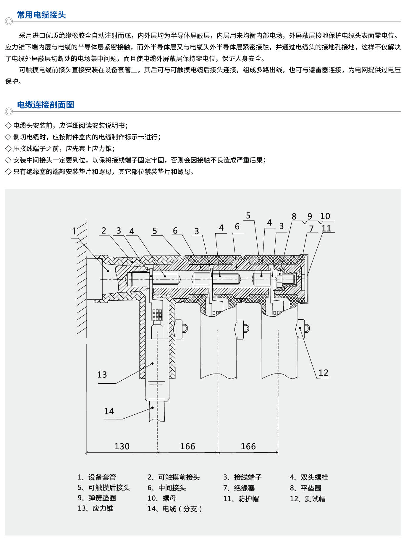 功能特點:采用預(yù)制式帶電可觸摸硅橡膠電纜頭,全密封、全絕緣、免維護,可靠保證人身安全.結(jié)構(gòu)緊湊,外形小巧美觀,不銹鋼雙層稻體,使用壽命可達二十年以上;在不影響主網(wǎng)運行的前提下,實現(xiàn)區(qū)域停電檢修,減小停電范圍;可配一臺或多臺SF6負荷開關(guān)或真空斷路器。接線方式靈活多樣,分支出線可多達8回路;可選避雷器、短路故障指示器、限流熔斷器等,滿足用戶各種要求。