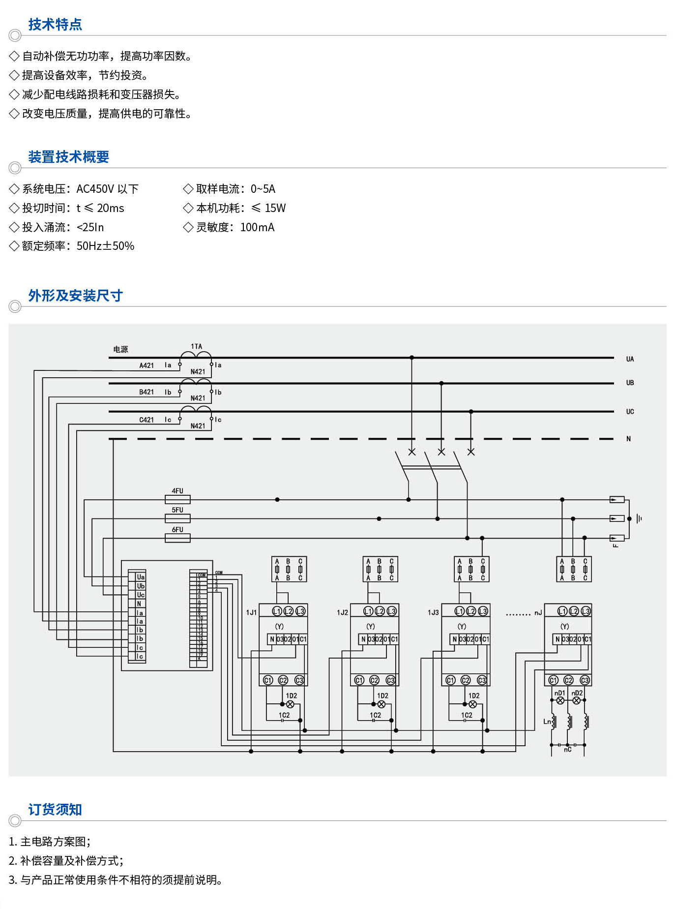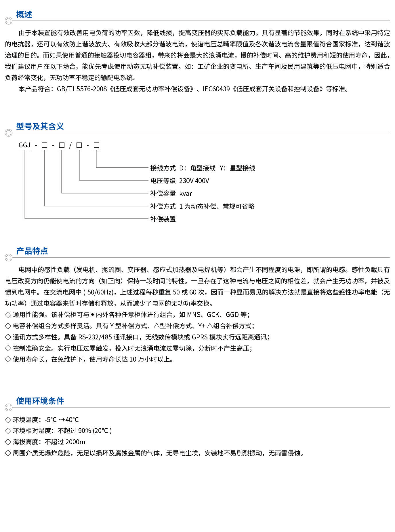 由于本裝置能有效改善用電負荷的功率因數,降低線損,提高變壓器的實際負載能力。具有顯著的節能效果,同時在系統中采用特定的電抗器,還可以有效防止諧波放大、有效吸收大部分諧波電流,使諧電壓總畸率限值及各次諧波電流含量限值符合國家標準,達到諧波治理的目的。而如果使用普通的接觸器投切電容器組,帶來的將會是大的浪涌電流,慢的補償時間、高的維護費用和短的使用壽命,因此,我們建議用戶在以下場合,能優先考慮使用動態無功補償裝置。如:工礦企業的變電所、生產車間及民用建筑等的低壓電網中,特別適合負荷經常變化,無功功率不穩定的輸配電系統。本產品符合:GB/T15576-2008《低壓成套無功功率補償設備》、IEC60439《低壓成套開關設備和控制設備》等標準。