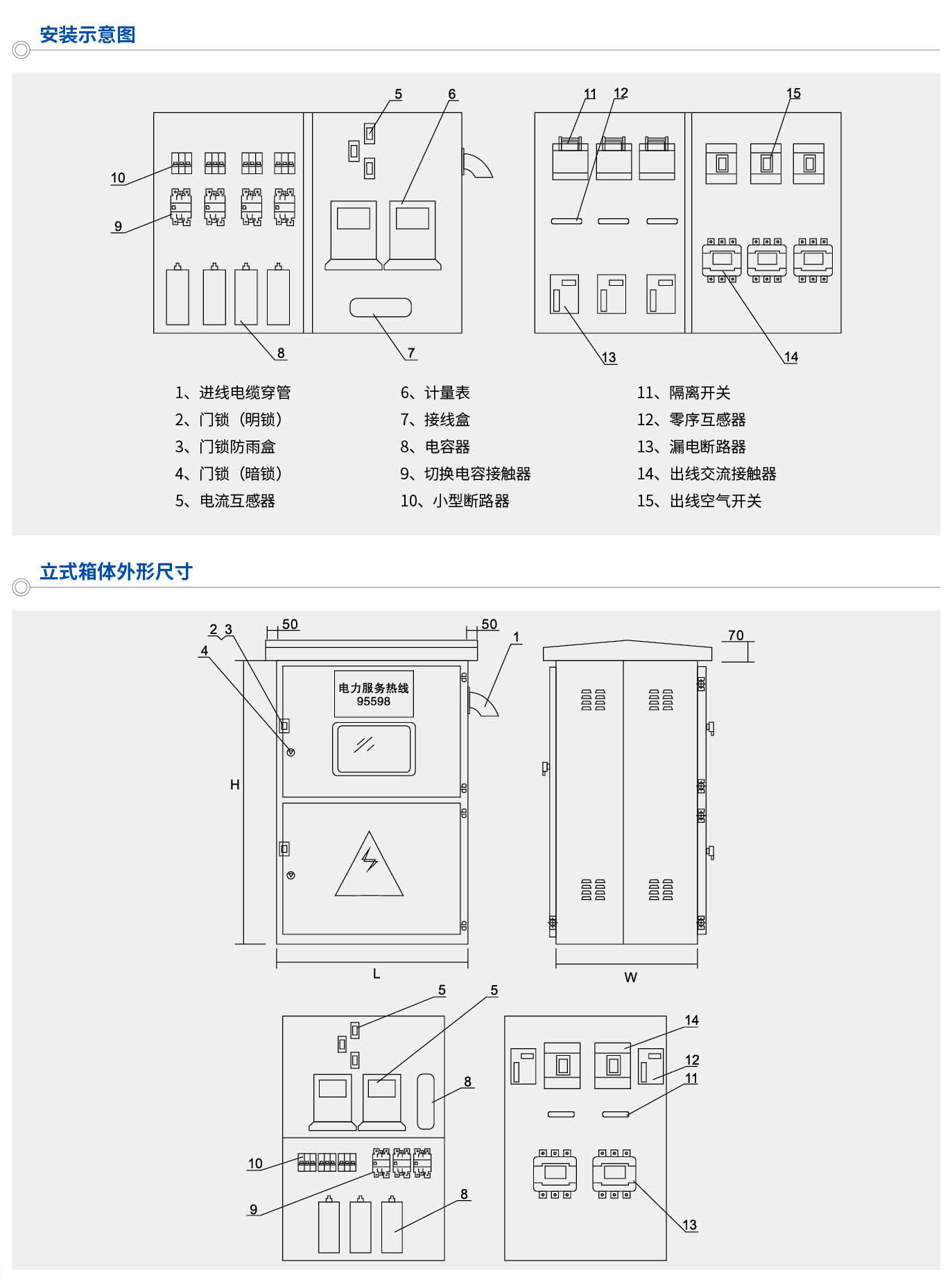 JP戶外綜合配電箱是集計(jì)量、出線、無(wú)功補(bǔ)償?shù)榷喙δ苡谝惑w的,戶外綜合配電裝置;集短路、過(guò)載、過(guò)電壓、漏電等保護(hù)功能;體積小、外型美觀、經(jīng)濟(jì)實(shí)用,安裝于戶補(bǔ)柱上變壓器的電桿上,足城鄉(xiāng)電網(wǎng)改造的新一代理想配電產(chǎn)品。
